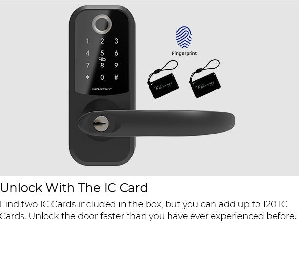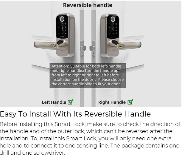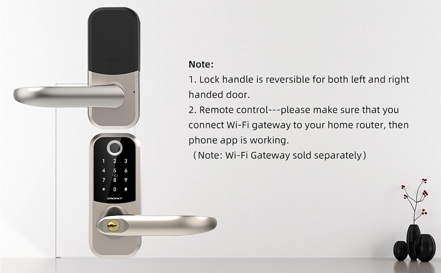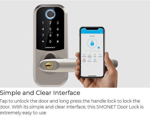 • SMONET 5-in-1 smart lock with handle, created for security and smart home. Guard your home and beloved one.