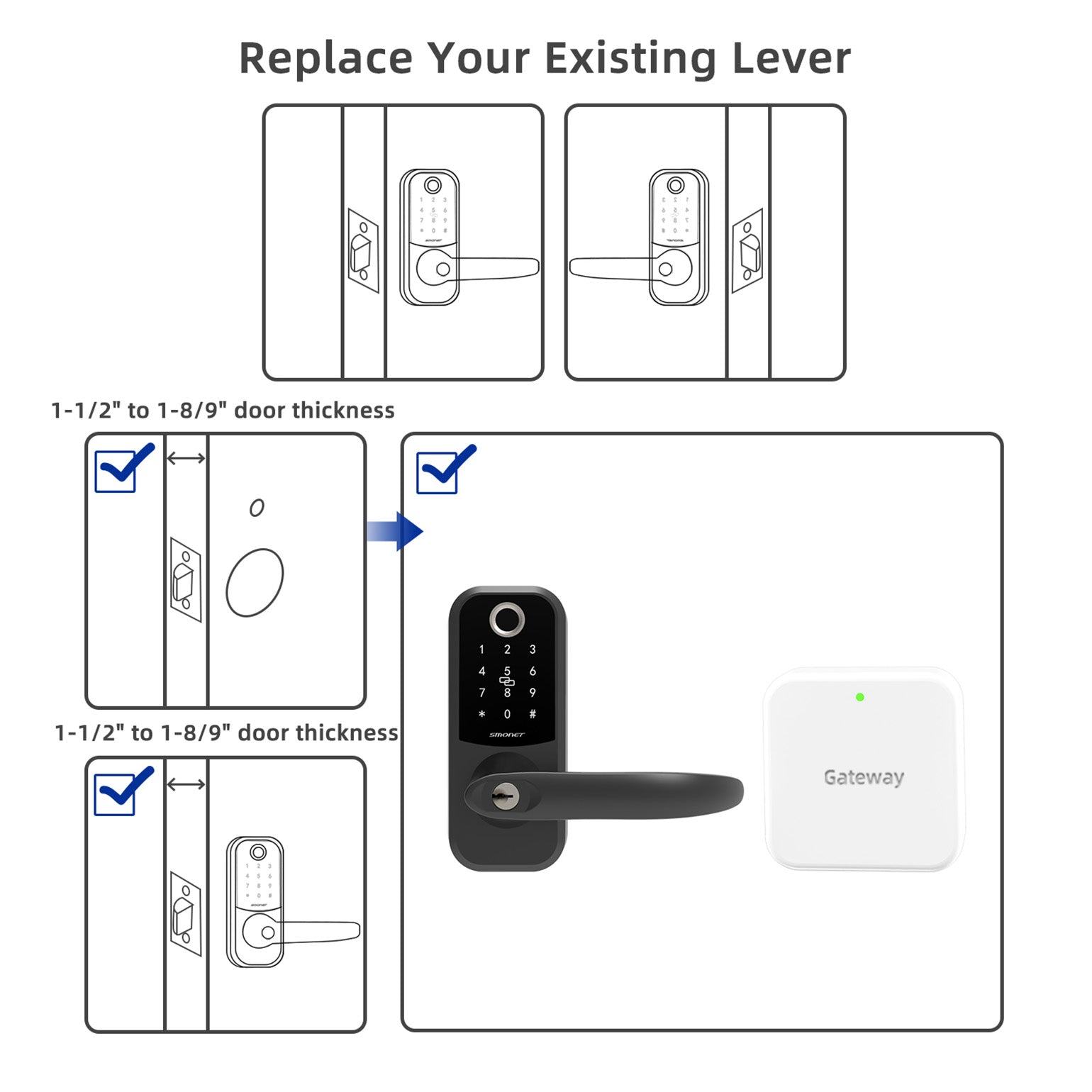 SMONET H1-BF Smart Lock With Handle, Multiple Ways to Unlock/Lock