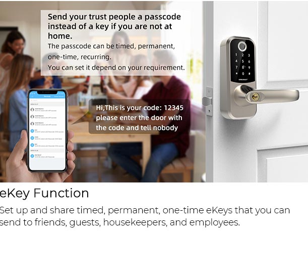 • Smartphone auto lock: remotely share codes with family/guests via free Next Lock app. Real-time access logs and custom auto lock time for peace of mind.
