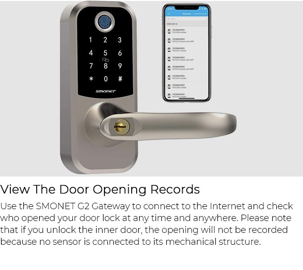 SMONET H1-BF Smart Lock With Handle, APP operation record