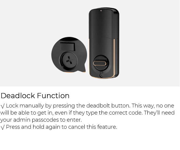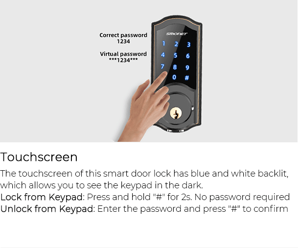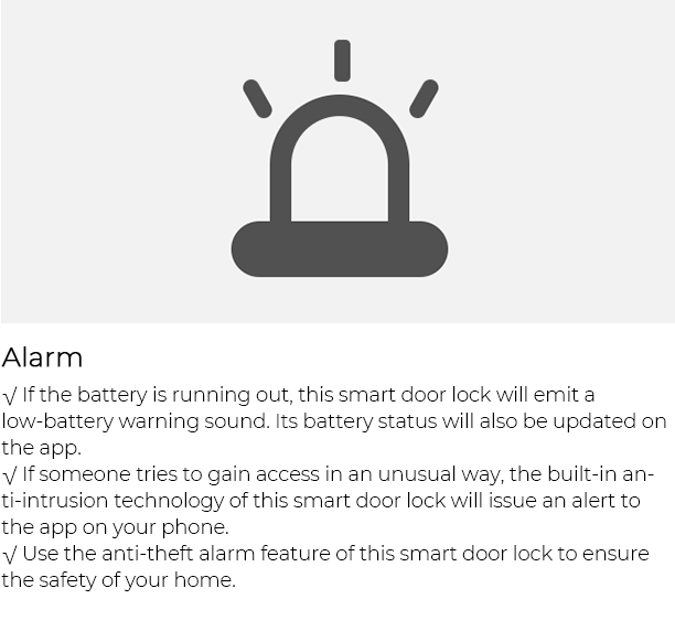 High Security-This smart door lock will automatically lock for 5 minutes if anyone tries to enter an incorrect passcode more than 5 times. You will also be notified through the app on your phone or other devices.
