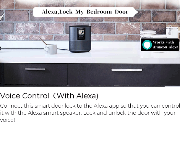 Voice Control -After connecting this smart door lock to the Alexa app, you can control the lock with your voice thanks to the Alexa smart speaker.