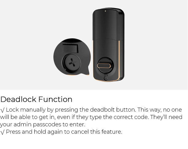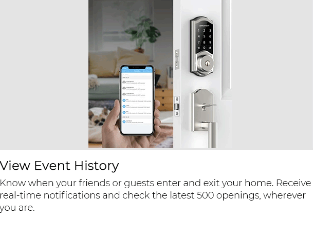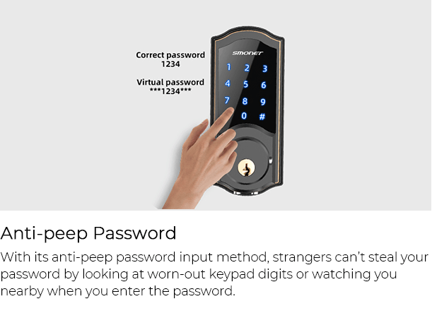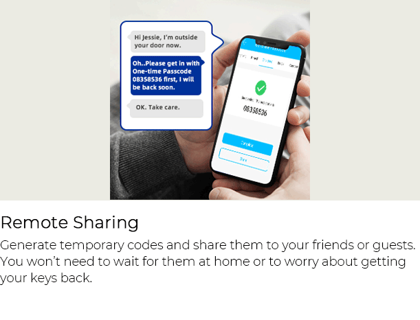 - Remote Sharing Password: Generate One-time passcode for guests. Long press and hold # to lock the door. Flexible entry for visitors without keys.