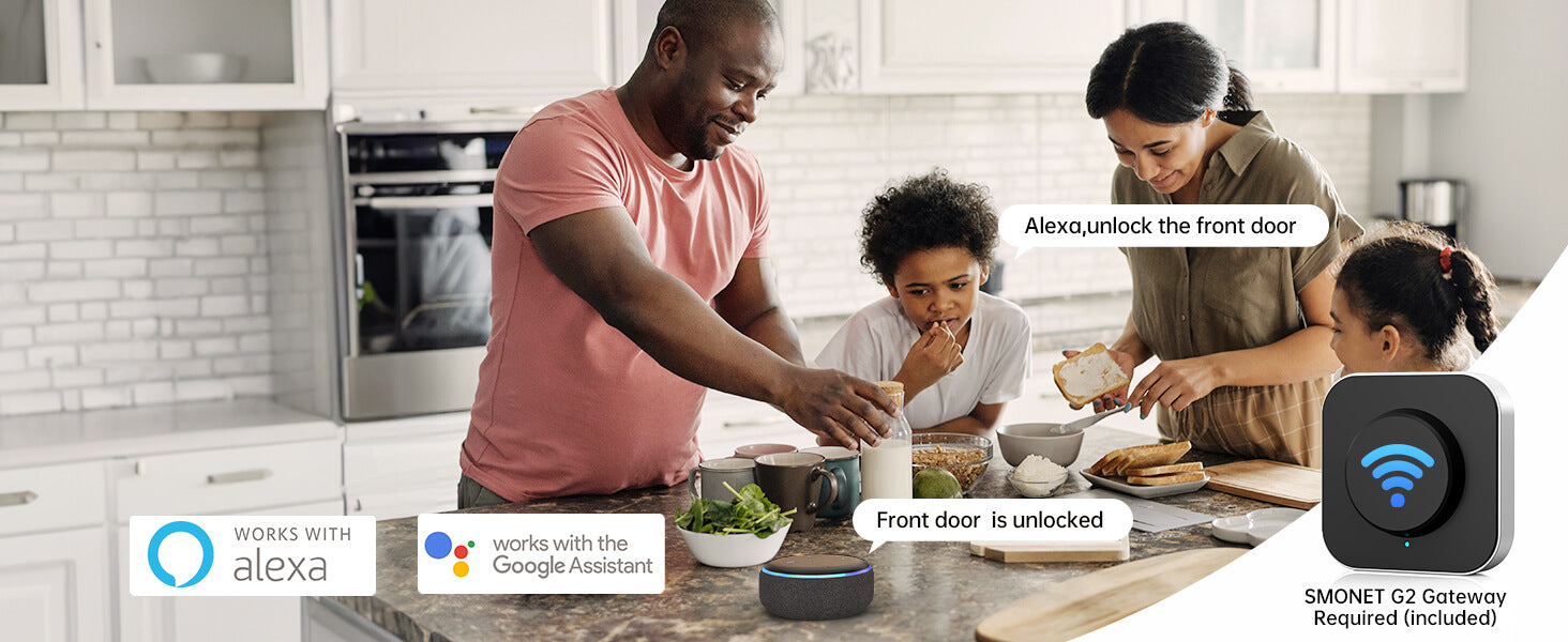 ‎Latch, Lock Screws, Fobs, Keys, User Maunal, Exterior lock, Interior lock, 2 Lever Handle Set, WiFi Gateway, Diagram template, Mounting plate‎Latch, Lock Screws, Fobs, Keys, User Maunal, Exterior lock, Interior lock, 2 Lever Handle Set, WiFi Gateway, Diagram template, Mounting plate.