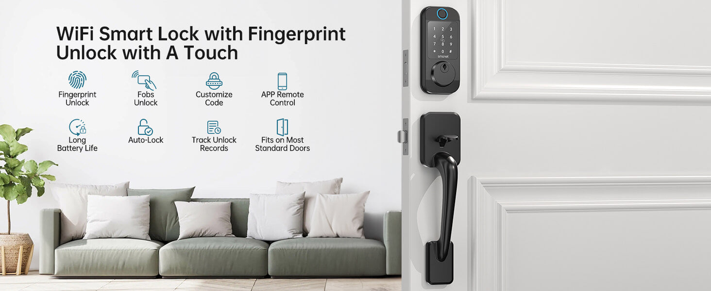 Keyless Entry Door Lock Deadbolt with Handle Set - SMONET Fingerprint WiFi Smart Locks, Digital Remote Control Keypad Bluetooth Alexa Deadbolt Lockset with Auto Lock Code Fob App